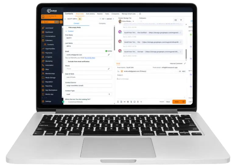 Surge comes with a built-in CRM that keeps every lead and customer in one place. No more scattered emails or spreadsheets – you’ll always know where each prospect is in your sales pipeline.