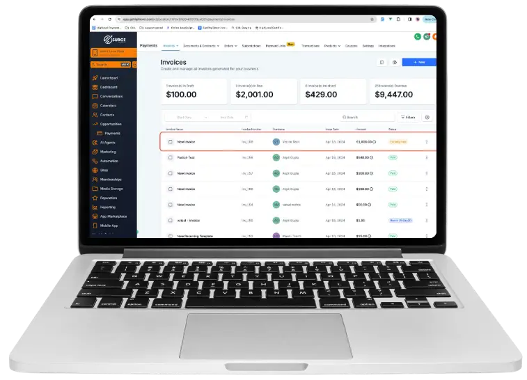 Surge makes it easy to send professional invoices and get paid faster – all from the same platform where you manage your leads and customers. No need for extra software or messy paperwork.